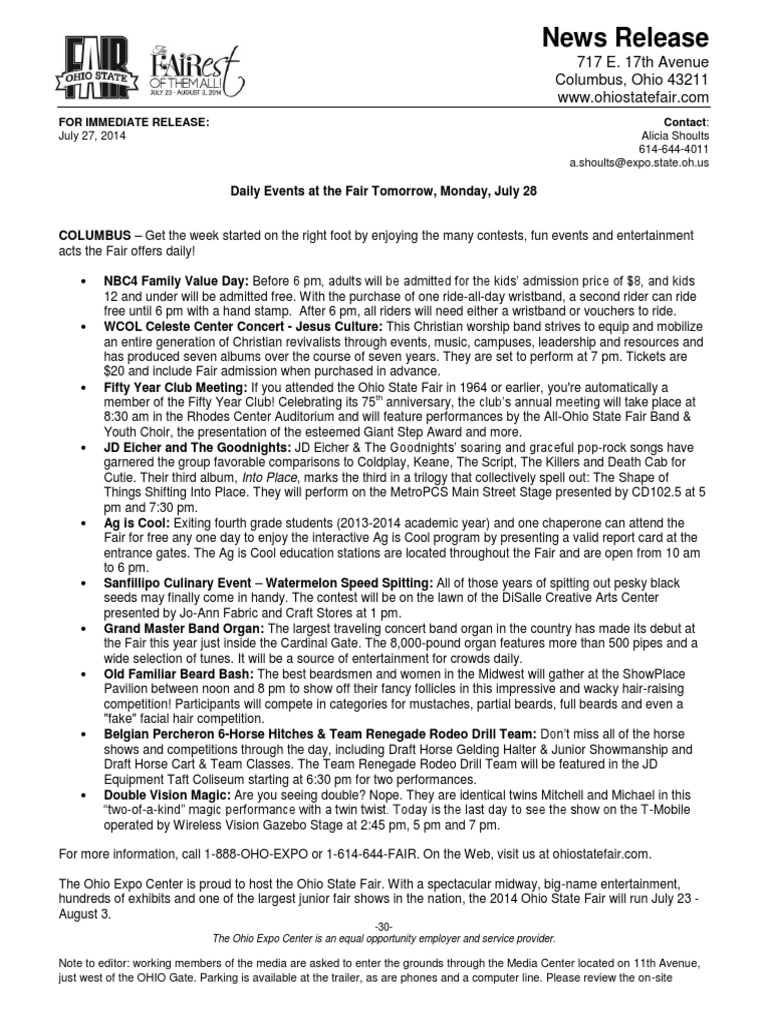 Ohio State Fair July 28 Release PDF Leisure , From competing, to purchasing art, to admiring the pieces, every. 4 at the ohio expo center and ohio state fair, 717 e.